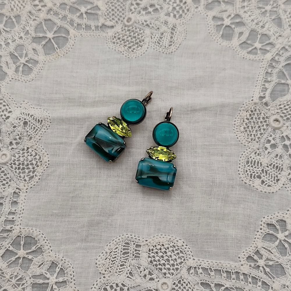 Boucles d'Oreilles Athéna - Fantaisie | Bleu Pétrole et Vert