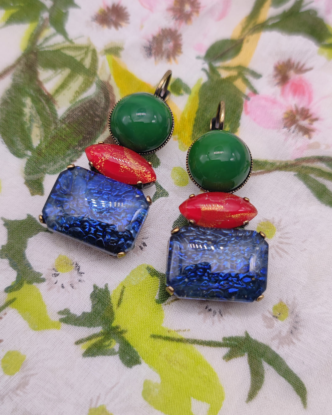Boucles d'Oreilles Dimi Green, Red & Blue