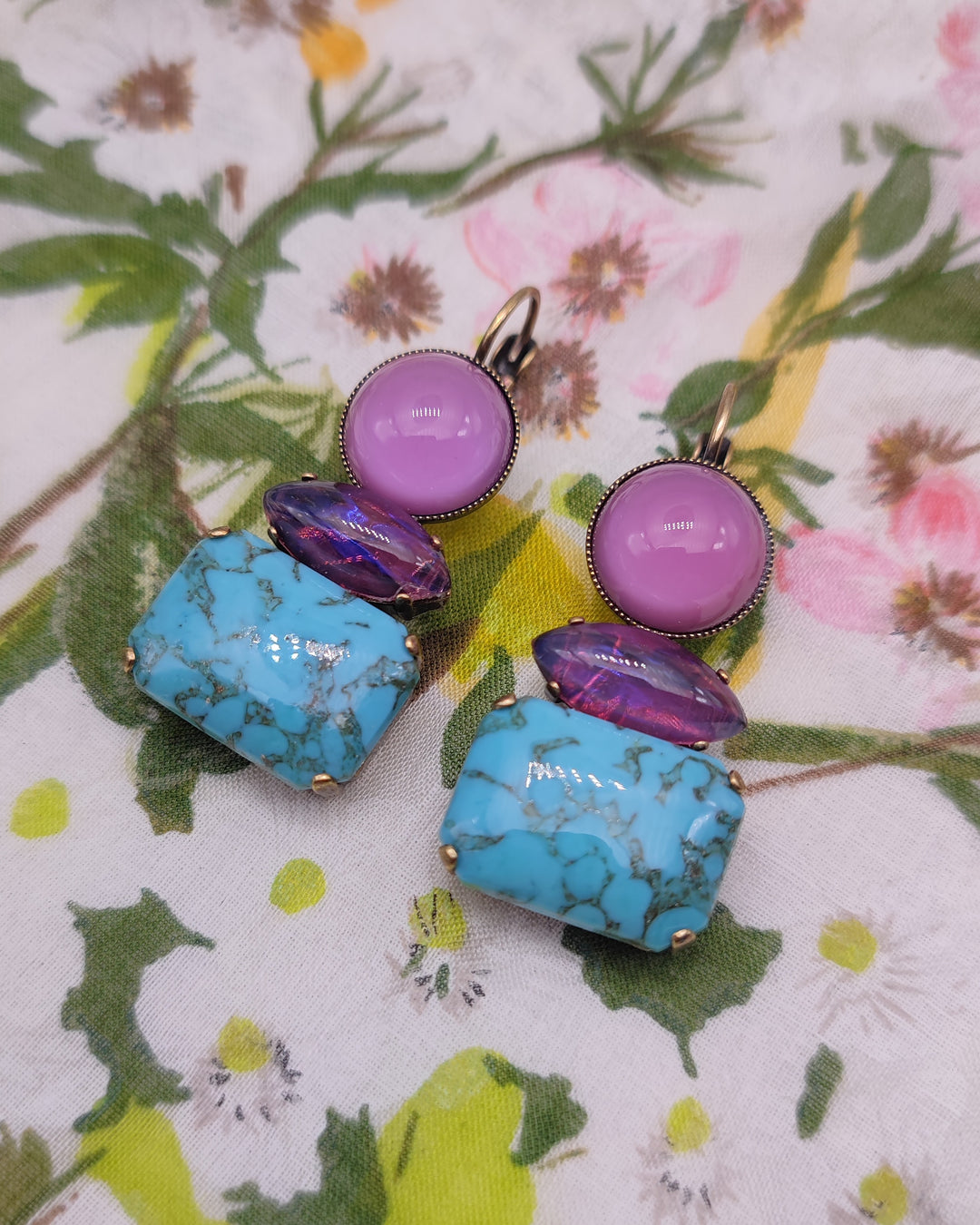 Boucles d'Oreilles Dimi Purple & Turquoise